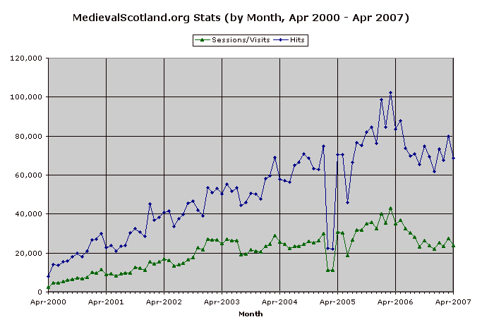 Statistics for Apr 2000-Oct 2002 generated by http-analyze 2.2 (using a 1 day window to determine sessions).